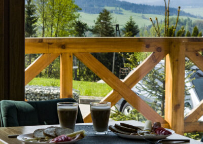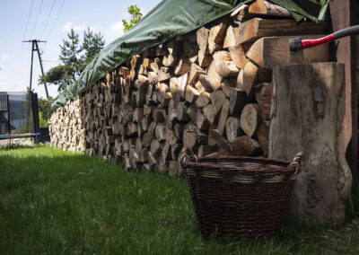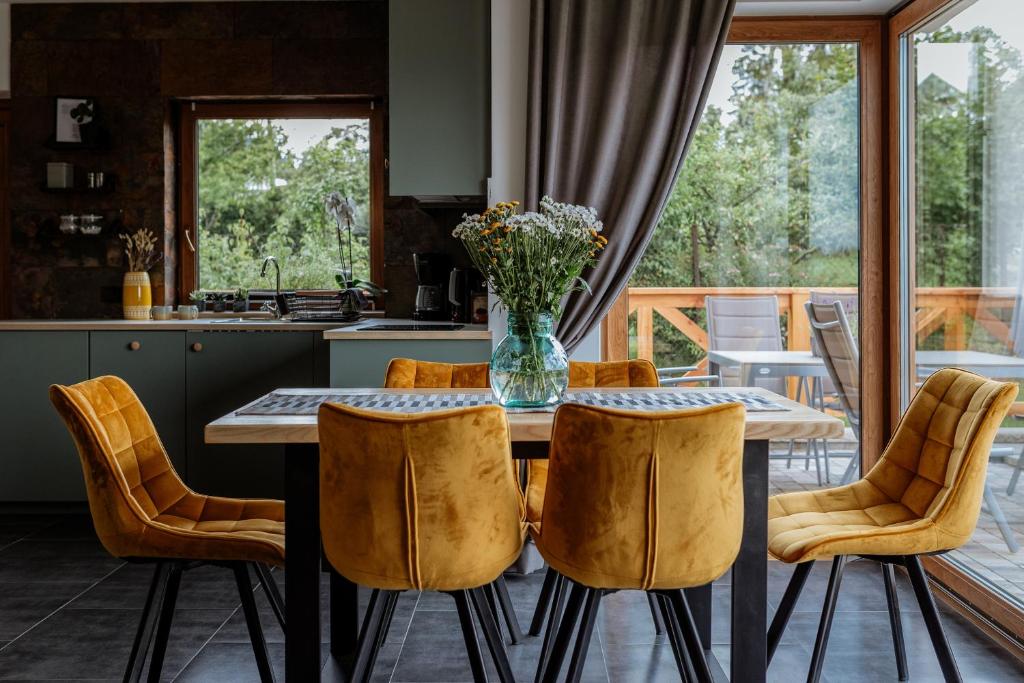 Każdy z domków posiada przestronny taras, dostęp do grilla oraz kominek.