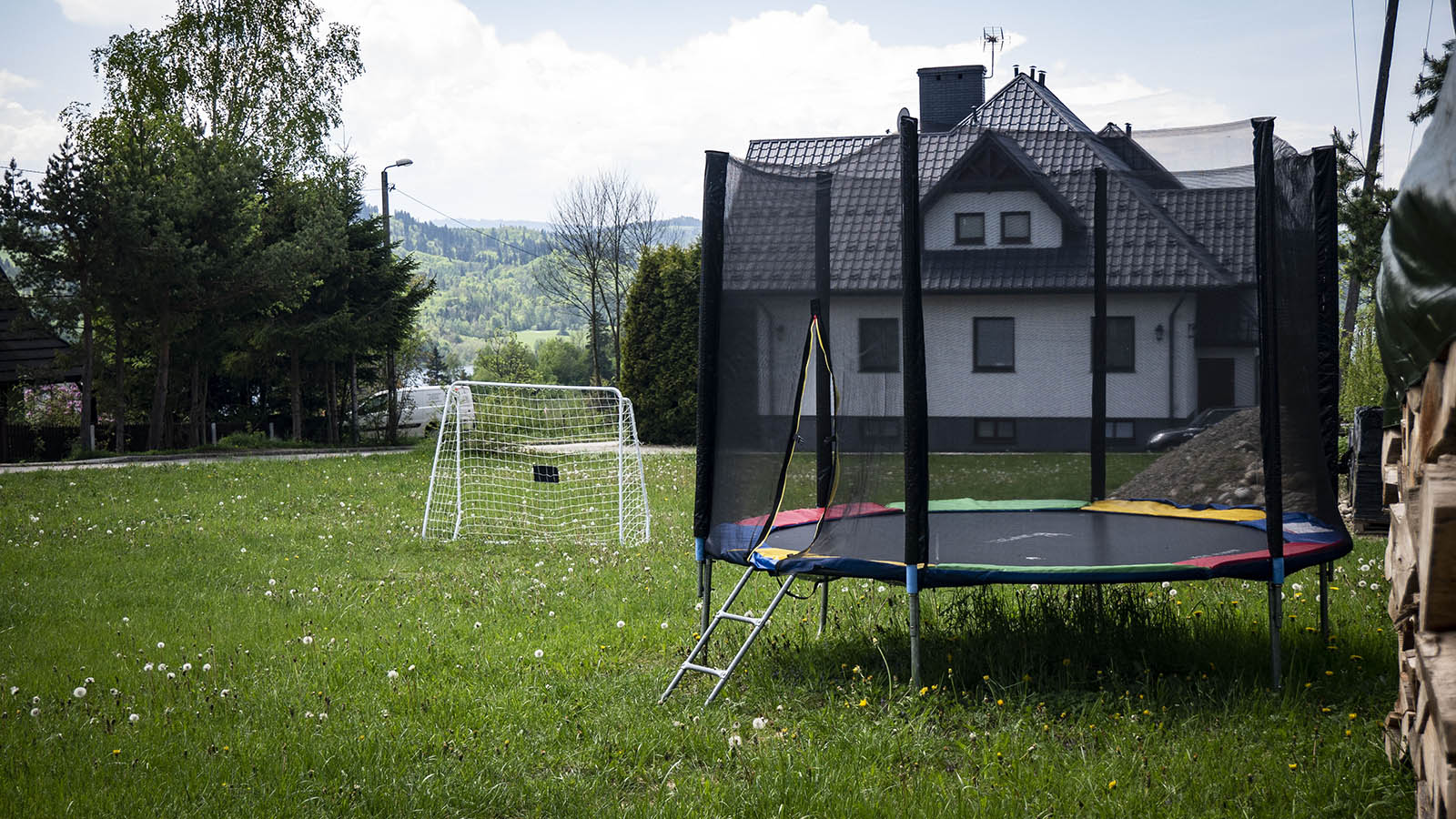 Cała posesja jest oświetlona oraz jest zamontowany monitoring