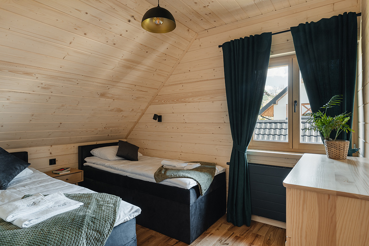 Każdy domek jest przestronny i wygodny, idealny dla rodzin i grup przyjaciół – pomieści nawet 9 osób.